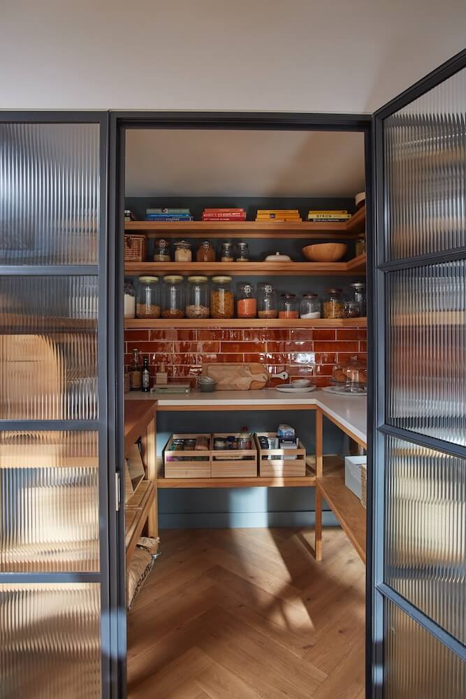 The kitchen was designed to be in a new extension to the house, which had a very different vibe but was still sympathetic to the existing Arts & Crafts building. The architect and another team had designed and built this element, and we had no particular limitations. We did have a very large, vaulted ceiling to work with in the living area, and we used a beautiful tile on the wall to create a really impactful feature. The space had a good flow to it, allowing us to position the living, kitchen and dining zones with ease. There was also space for a statement walk-in pantry alongside a separate laundry and utility space. We were very lucky to be able to create a layout that made perfect sense of the available space and met all the requirements of our clients.