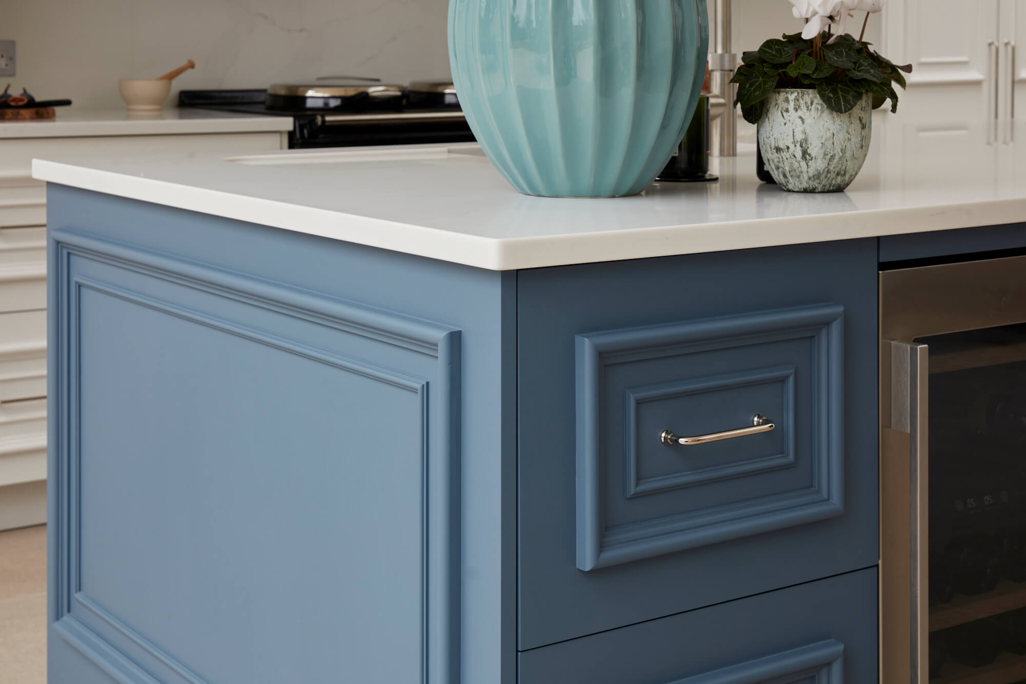 The bead-moulded cabinet fronts, which offered a nod to the period styles that inspired the brief, adding depth, texture and elegance.