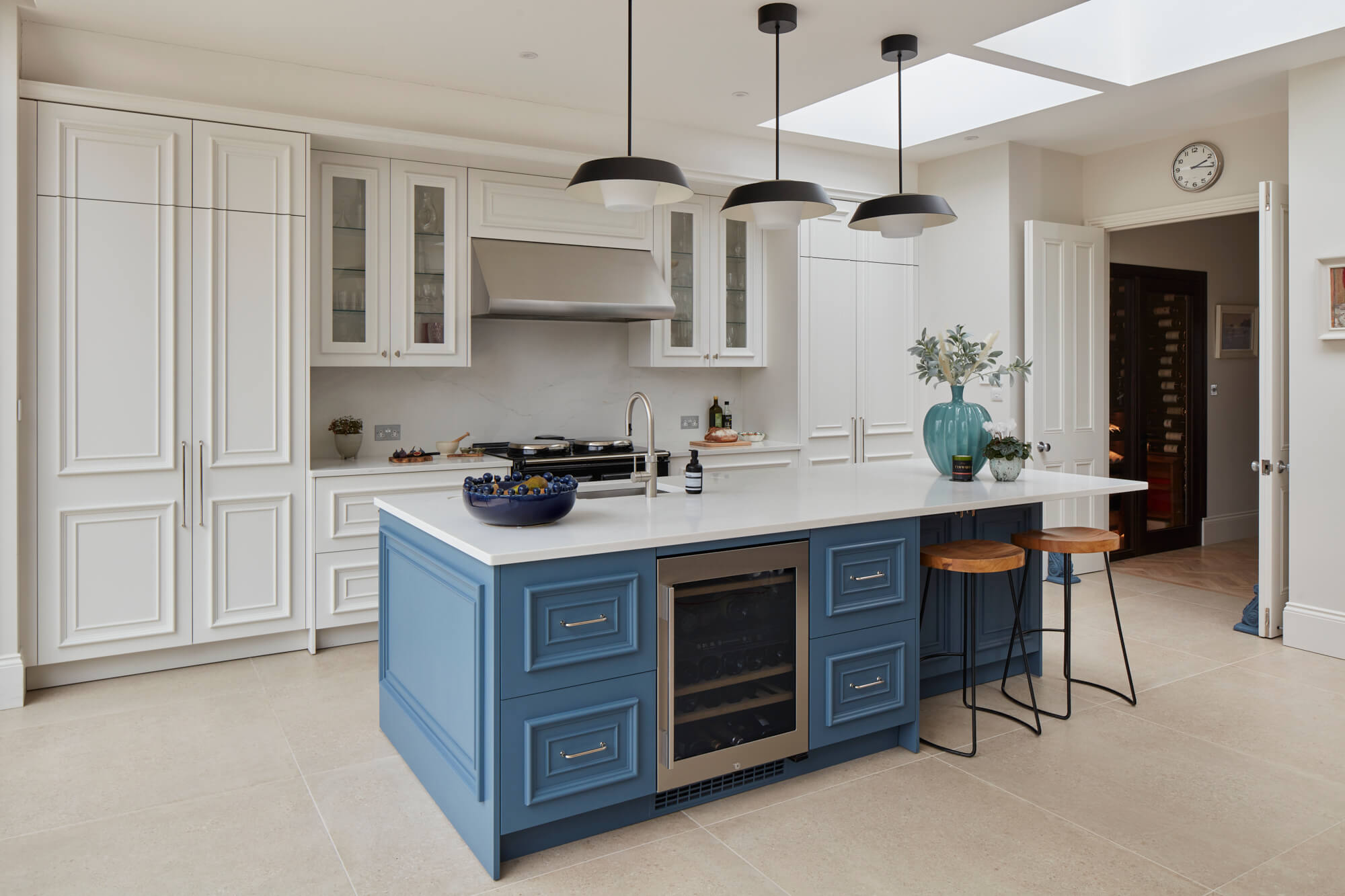 Crucial for a kitchen centred around an AGA, this system can deal with high temperatures and steam. The stainless-steel canopy of the Westin hood not only performs brilliantly but also contributes a sense of permanence and sophistication to the space. It anchors the design, creating a subtle yet intentional focal point that blends seamlessly with the kitchen’s classical detailing.